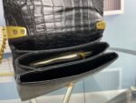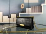 The newly launched small square crocodile pattern bag. The design of the chain length allows it to be worn on one shoulder or crossbody. The simple crocodile pattern combined with the logo mark instantly fills it with a high level of sophistication.