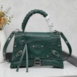 Large size, with box and motorcycle Hourglass bag|||Balenciaga motorcycle Hourglass bag. Have you heard of the collaboration between Balenciaga Hourglass and motorcycle bag? Look at this combination of Hourglass bag and Le Cagole #motorcycle bag#. The Hourglass bag body is full of rose studs of motorcycle bag. Black Arena lambskin is full of punk style. Quite interesting. Size 27x18x1.