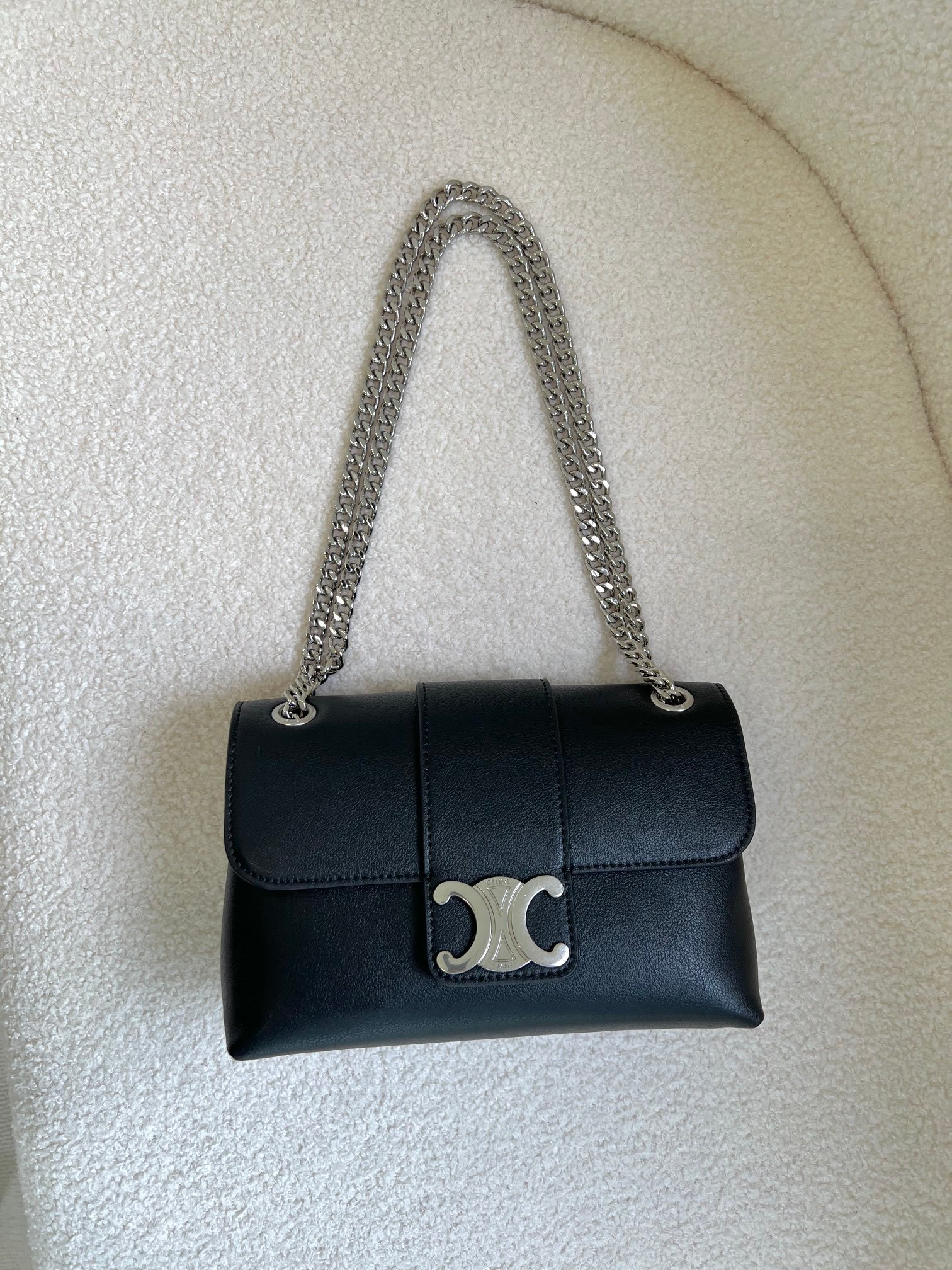 The newly released Victoire chain bag uses textured calfskin to create a soft bag shape, replacing the hard and sharp line structure, making it more relaxed and friendly. The metal sliding chain shoulder strap can achieve different styles such as shoulder carrying and crossbody carrying. The bag can freely switch between casual and formal scenes.