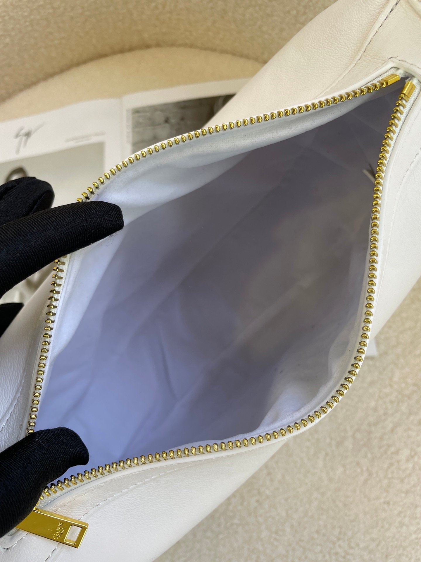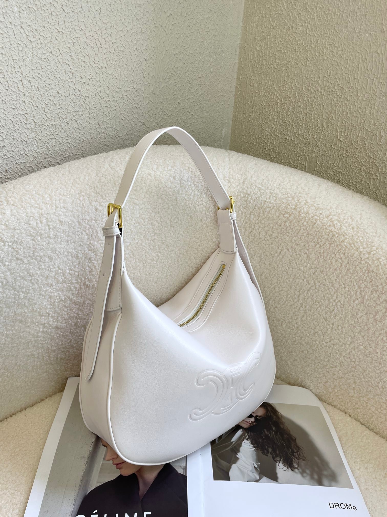 Soft calfskin handbag, size 30 x 28.5 x 8 cm, calfskin leather, suede calfskin lining, gold finish, shoulder carry, zipper closure, one main compartment, adjustable shoulder strap.