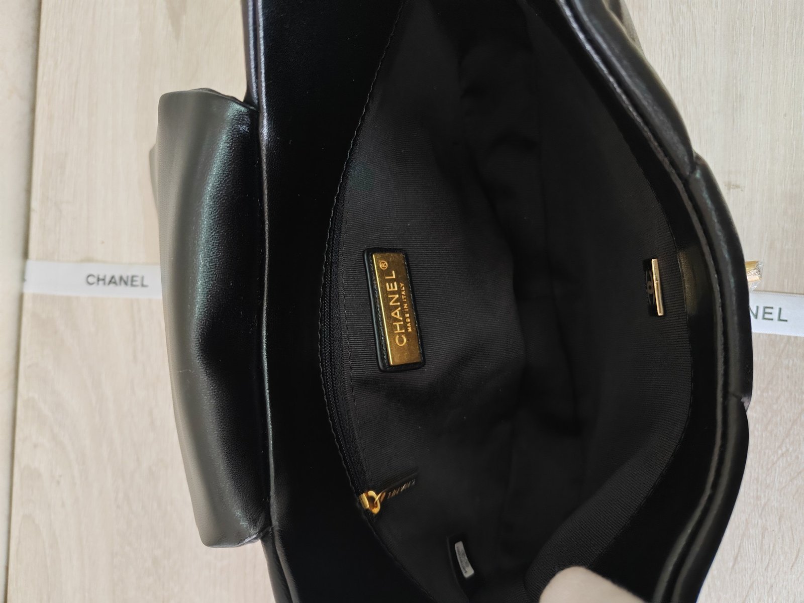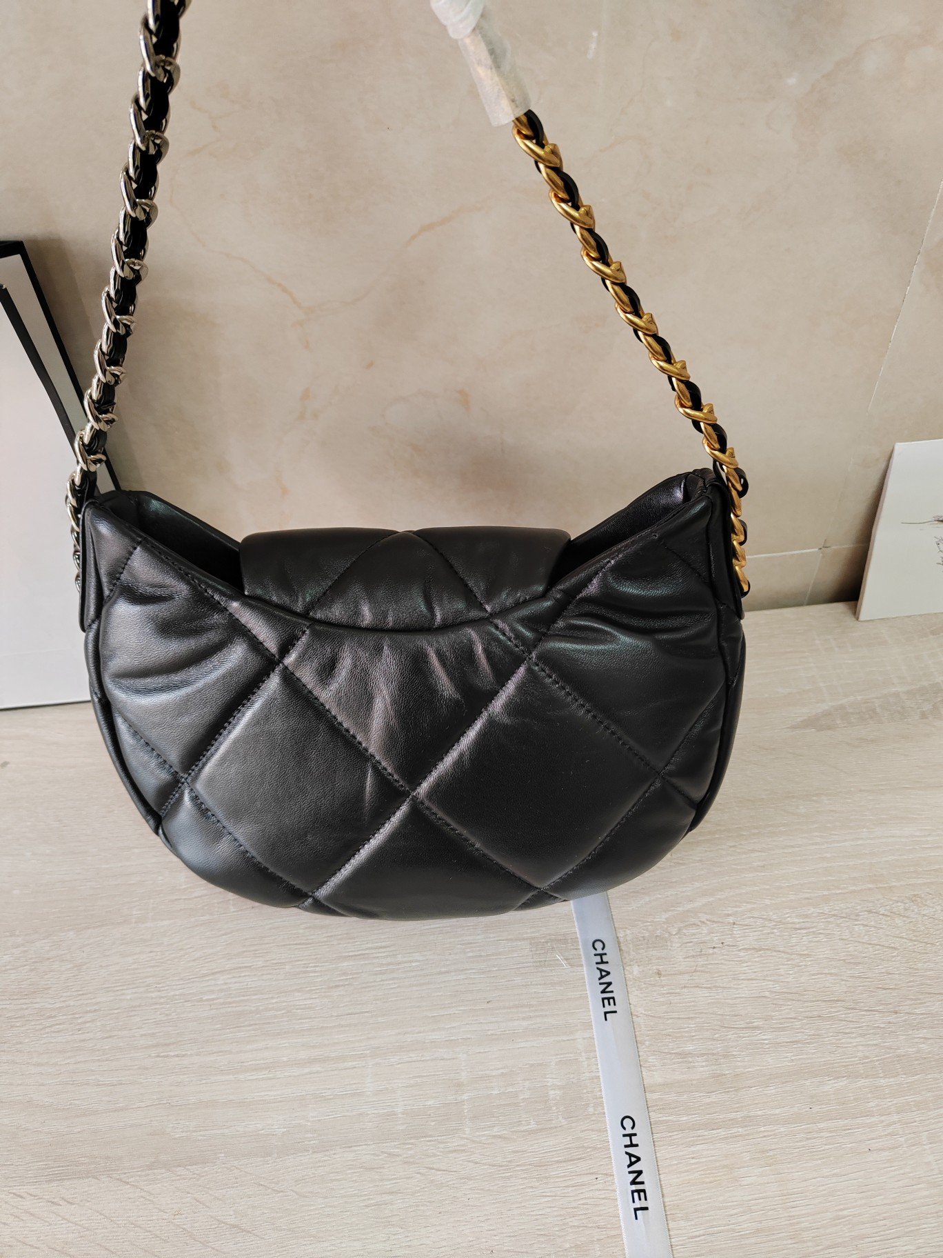 24c 19 underarm bag! Chubby pumpkin-shaped design, large diamond pattern, and comfort elements are newly interpreted. Color-blocked leather-threaded chain + leather upper chain shoulder strap, designed with the classic double C logo, is the personalized style design of the Chanel 19 handbag. The overall soft bag body design feels more casual and is lighter in weight. Versatile and practical good bag.