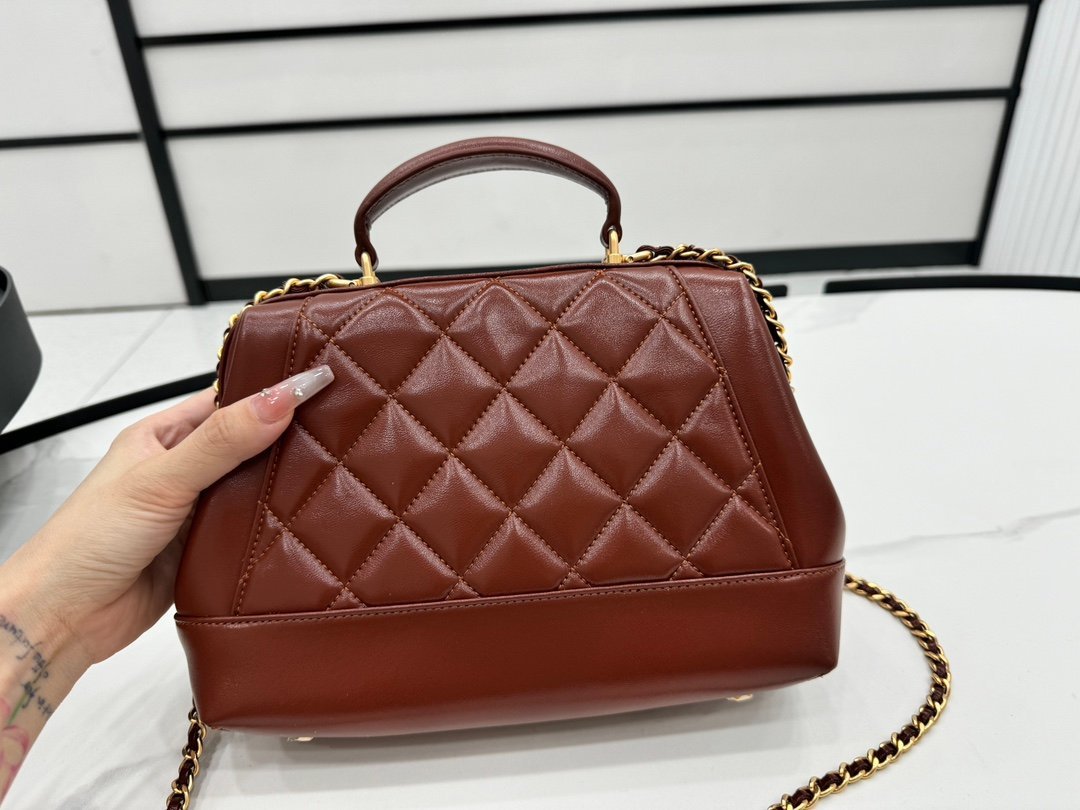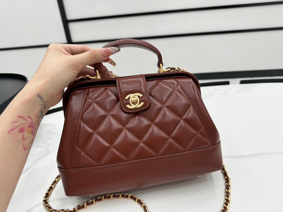 AS4959 Chanel 24A handmade visit series, doctor bag, super beautiful in kind, oil wax leather with metal chain, classic rhombus design, retro and fashionable, showing noble and elegant, a favorite one, size: 16 × 23.5 × 8cm