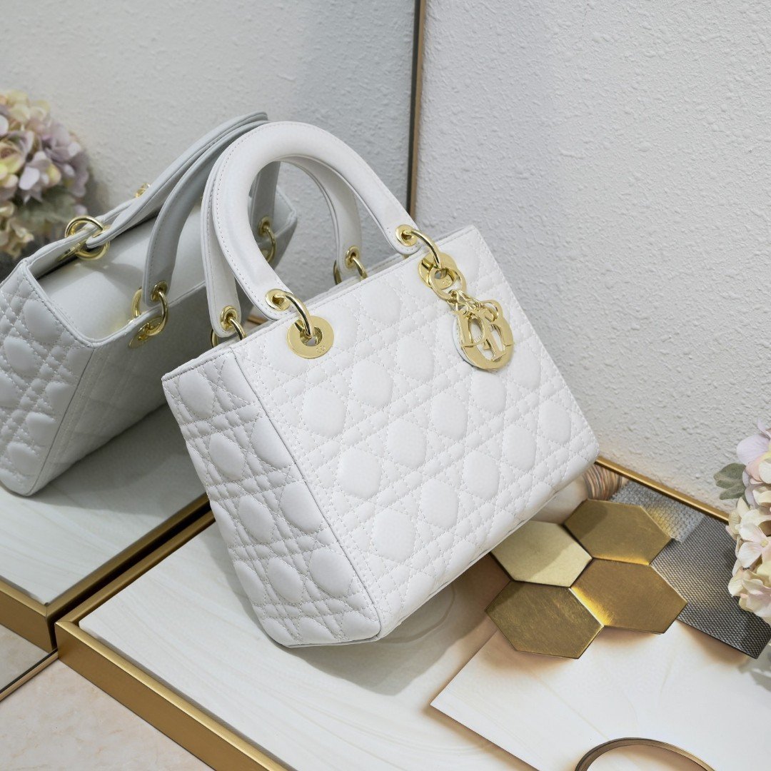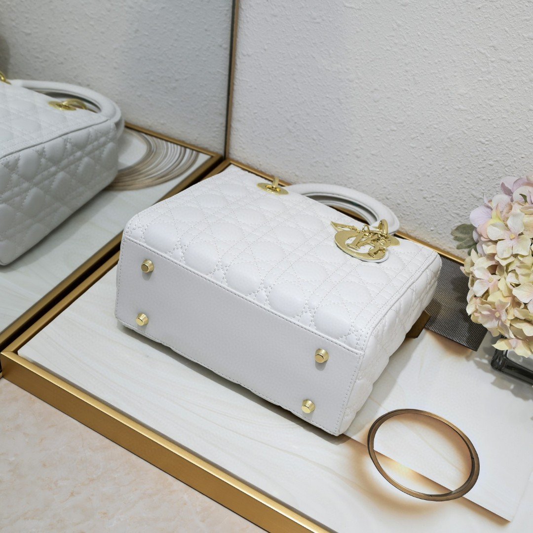 White five-grid sheepskin. “My Lady” new style. Flap at the bag opening. Classic single-shoulder handbag. Single-shoulder crossbody British royal Lady Dior bag. Removable genuine leather shoulder strap. Super soft and delicate texture. Comfortable without losing elegance. Fashionable and simple design. Large capacity bag👏. Size: 24x11x20cm.
