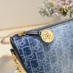 This callisto chain handbag is a new addition to Dior’s autumn collection, and it enhances the style of the collection with a stylish and elegant half-moon shape. It is carefully crafted in blue oblique print and embellished with the same tone of cow leather detailing. The zipper is designed to open and close, with a circular plaque engraved with the logo and star symbols, and the spacious compartment is equipped with multiple card slots. CD chain link chain is decorated with resin beading and paired with a leather strap for even more comfort on the shoulder. Dimensions: 20x14x4 cm