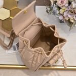 Small size. This Dior Caro backpack is a new product of the early spring ready-to-wear collection in 2025, showing a fashionable and elegant style. Meticulously crafted, it is paired with oversized cannage topstitching to enhance the style. The flap is decorated with a retro gold-finished metal CD logo. After opening, there is a drawstring main compartment. The small flap pocket can hold various daily necessities. Paired with a gold-finished handle and an adjustable shoulder strap for added comfort.