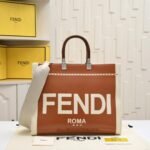 Model 4403 is in stock again: Sunshine medium handbag, patent leather material, engraved with FENDI ROMA letters showing natural canvas lining. Brown plexiglass hard handle FÉŃĎI TOTE tote bag “Sunshine handbag” simple letter LOGO design! Just holding it gives a great aura and doesn’t hurt the hand. The overall retro feeling is extremely strong. It is very suitable for fashionistas who like retro style. Highly recommended hard goods. 💥