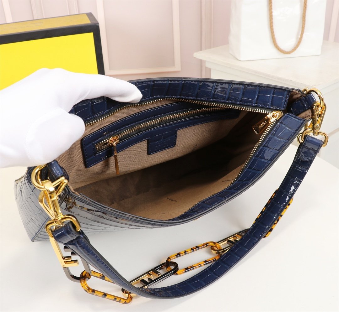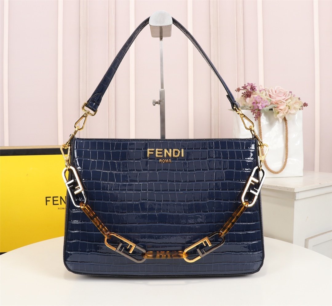 Fendi show piece. The underarm bag is full of retro charm. It is exquisite and will not have a sloppy feeling. It is beautiful and fashionable. It is definitely the first choice for going out with a bag! Size: 24×23 cm.