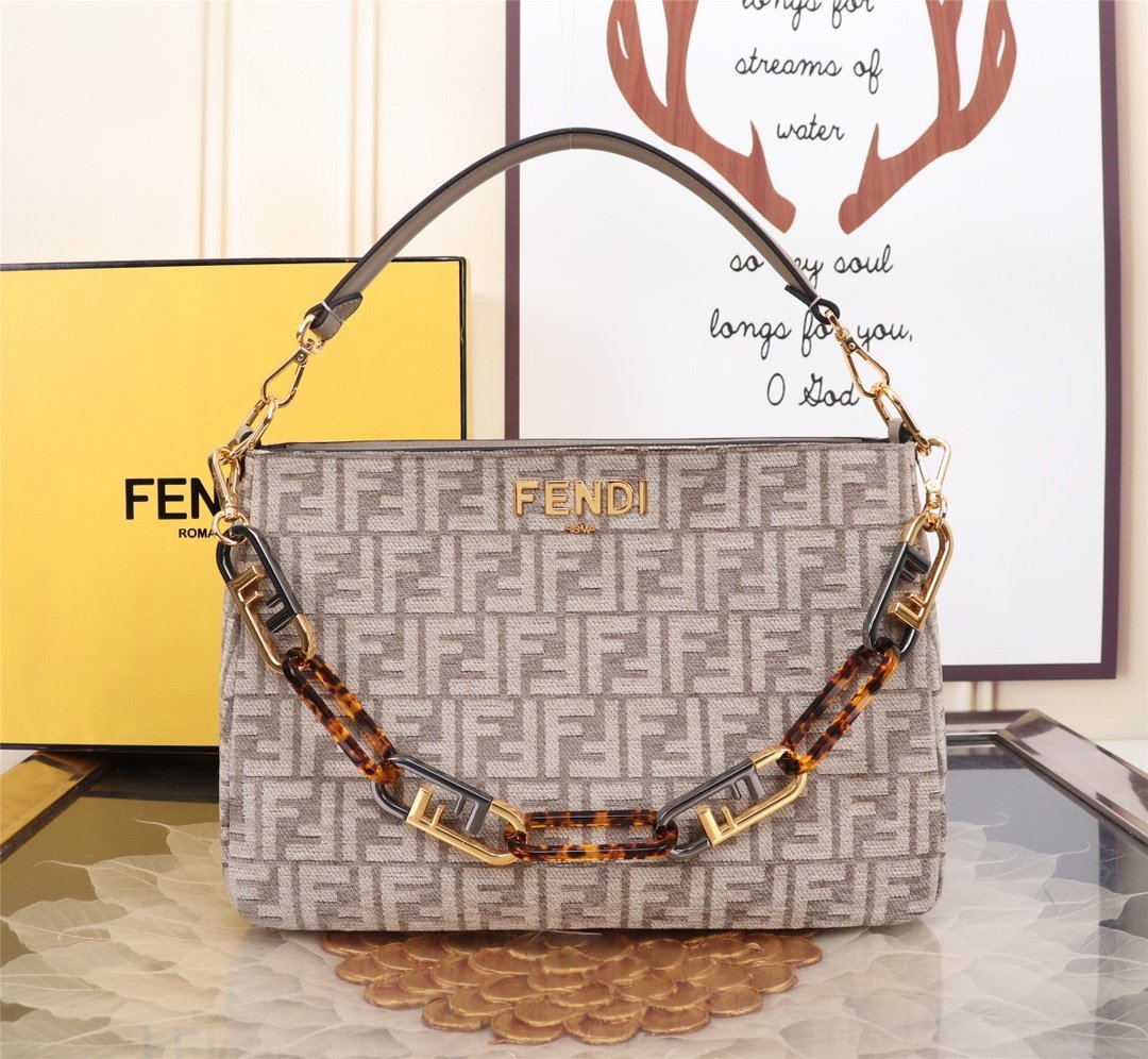 This AAAAA quality bag super subverts the traditional new O’Lock clutch bag is coming~ Printed with pigeon gray classic FF pattern, the style of gold and black color mixing is more innovative, and it also comes with a double handle and a removable leather strap!! Tortoiseshell shell effect plexiglass chain decorative handle is super unique, portable or underarm back~ Size 35/14/23 cm