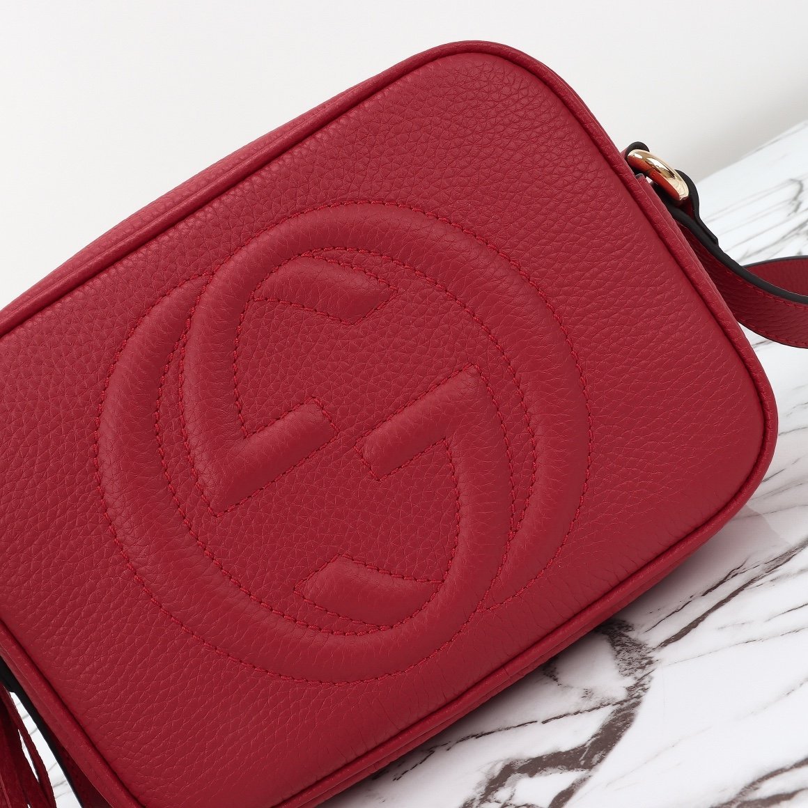 Embossed double G with leather tassel. First layer of cowhide, super soft