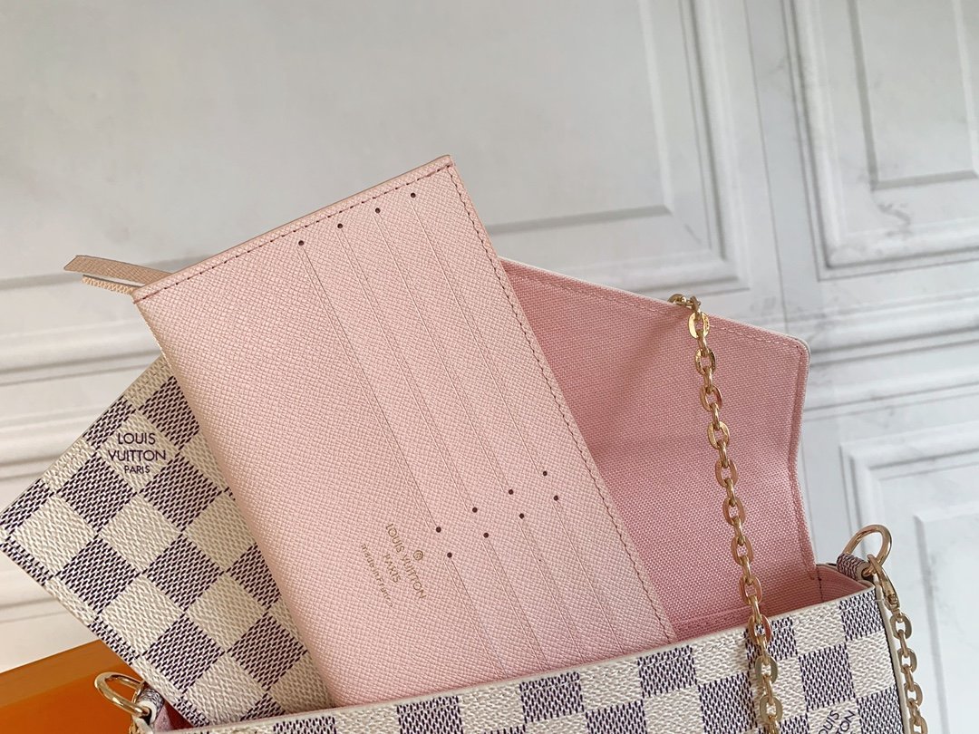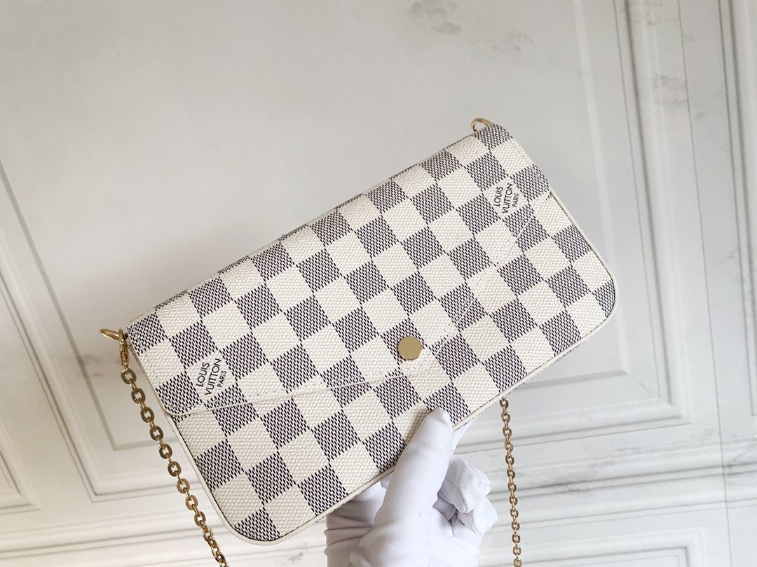 Three-piece set. Model M61276 Felicie handbag is elegant and luxurious. It contains two detachable pockets. It is a fashionable choice for carrying and organizing your everyday items. It is more than just a wallet. After removing the gold chain, it can also be used as a charming handbag or a small handbag. Size 21 * 11 * 2cm