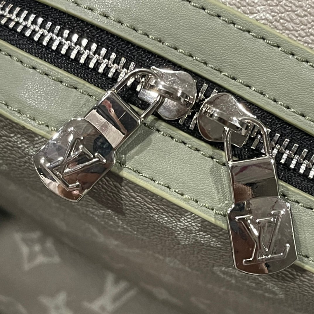 Gradient green. The latest Discovery small backpack is made of deep Monogram Eclipse Reverse coated canvas. The scenery of the gradual dissipation of the full-luck Monogram pattern creates a unique look. The leather label, zipper edge and top handle are then dyed in bright colors. The zipper front pocket and open side pocket complete the details and make it an excellent choice for daily carrying.