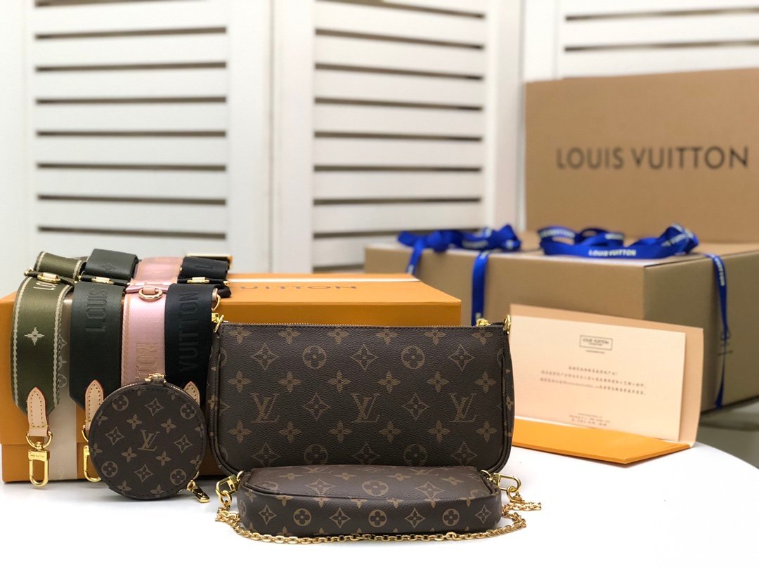 [For flower-matching and authentic small bag] M44823🌱lv🇹 Favorite three-piece handbag. A small and lightweight three-piece handbag made of Monogram canvas. It can be carried by hand or slung diagonally🎶. Matched with a small hanging bag, it has multiple uses. It is a classic style that you can carry on any occasion. ~~Size: 24.0×13.0×4.5 /19.5×11.0×4.0 /9.5×2.0.