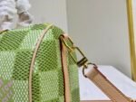 This Keepall Bandoulière 35 handbag is from the brand’s collaboration series with Tyler. It is made of Damier Golf coated canvas with cowhide trim. Louis Vuitton floral decorations highlight the details. The Marque L.Vuitton déposée logo is integrated into one of the Damier check patterns. Dimensions: 25x15x11cm.