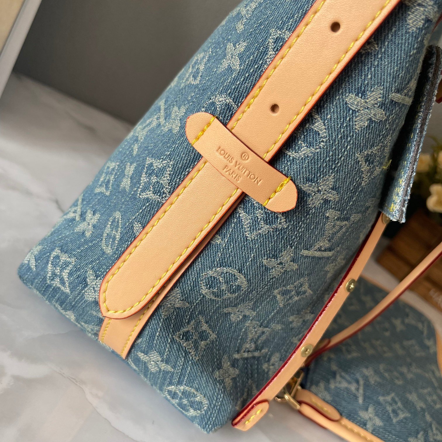(denim) launches a new medium-sized CarryAll handbag. It is crafted with Monogram canvas and leather trim to create a design that fits the body. The spacious interior features a zippered pocket. The detachable zippered clutch adds functional elements. The buckle can adjust the length of the handle.
