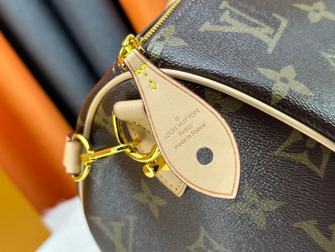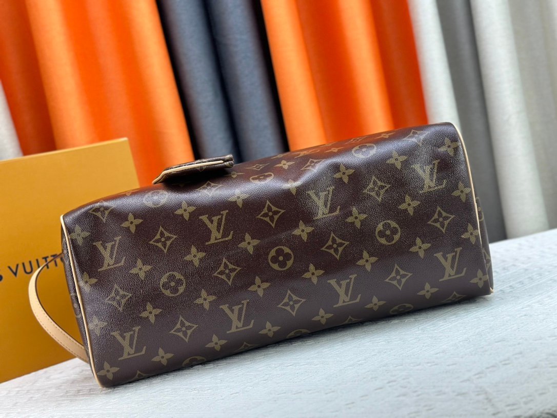 M46964 m24422 m41416 m24420 m11565 Speedy P9 Bandouliére 50 monogram leather handbag is wrapped in soft grained cowhide leather and lined with sheepskin. The silk-screened monogram pattern presents a blurred look of canvas printing, revealing the new season’s ingenuity of creative director Pharrll Williams. Size: 50x29x23cm.