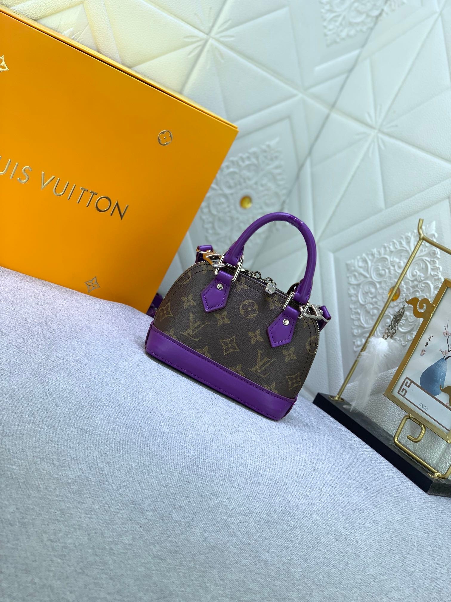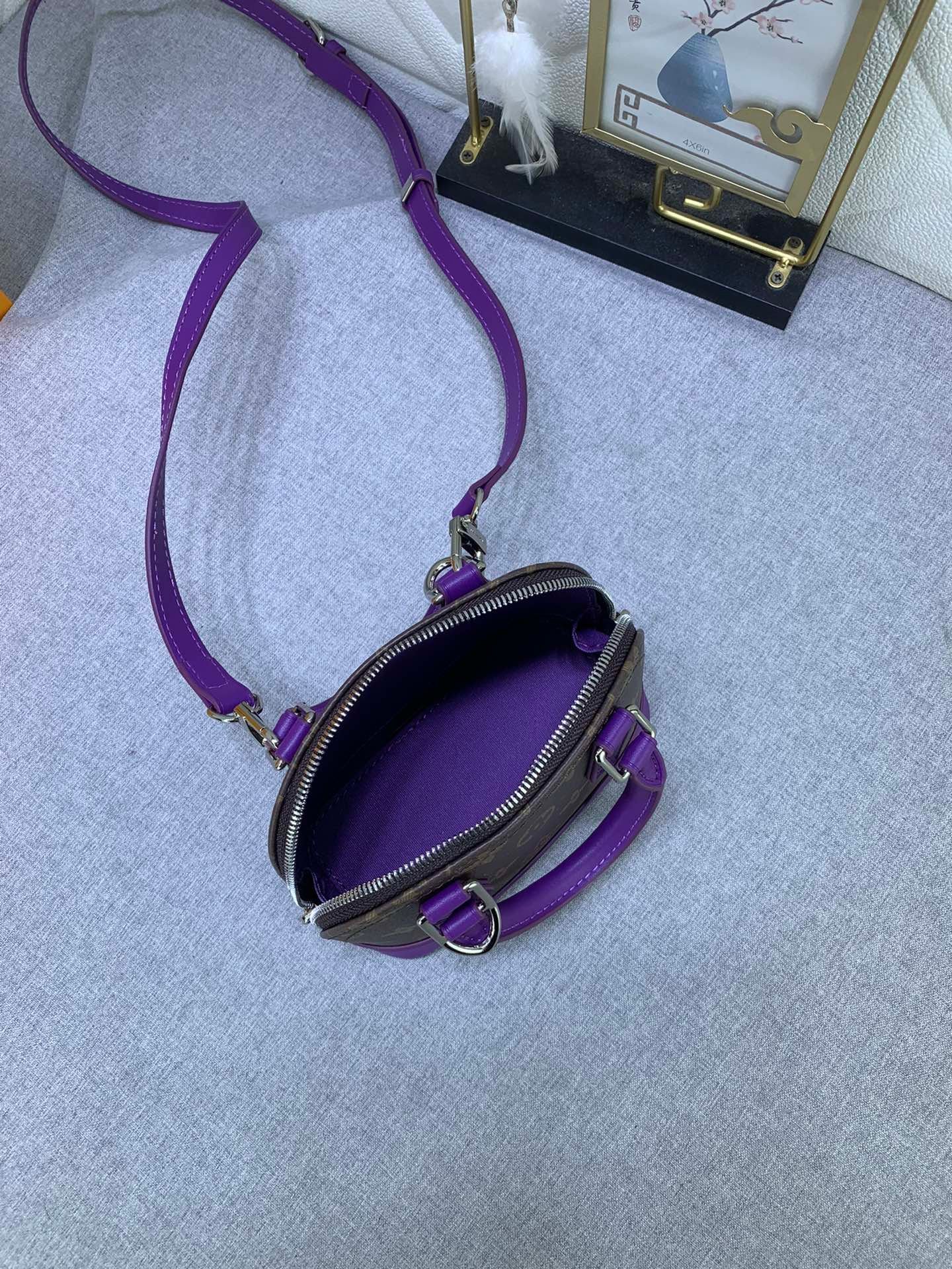 Mini shell bag series. New launch Nano Alma handbag. The Nano Alma reproduces the symbolic Alma bag in a miniature version. Louis Vuitton’s signature Monogram canvas material coordinated with decorations of natural leather. A delicately crafted item that combines traditional charm and modern functionality. When the double zipper is opened, the interior design with surprisingly ample storage space is revealed. With two leather handles and an adjustable and detachable shoulder strap, multiple styles can be created.