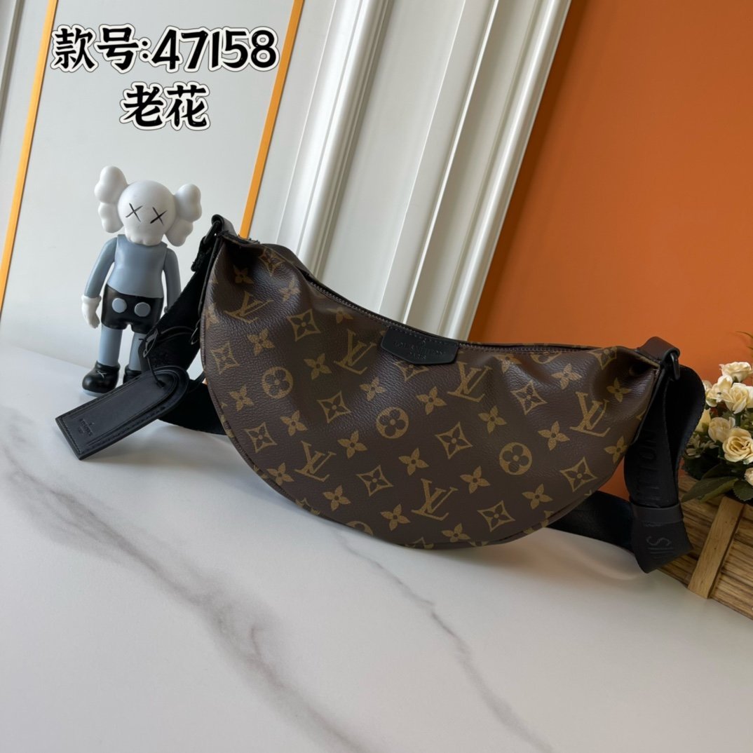 Upgraded version. Latest model. M47158 M12510. Black flower, old flower, embossed. This Hamac mini handbag condenses the classic design of the Hamac handbag. It is crafted with Monogram Eclipse coated canvas to create a unique and close-fitting structure. The detachable name tag establishes recognition. The adjustable shoulder strap is convenient for wearing around the waist or on the chest or back. 28.5 x 15 x 8 cm.