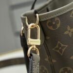 The double-sided shopping bag collection Neverfull Bandoulière Inside Out BB handbag, the iconic Neverfull handbag is reversible. The Bandoulière Inside Out BB edition is made from iconic Monogram canvas and has a grained leather on the back. It comes with a removable zippered bag that can be used alone or attached as an external pocket. Sparkling gold hardware adds that final touch. It also features removable straps that allow for crossbody. Dimensions: 24 x 14 x 9 cm