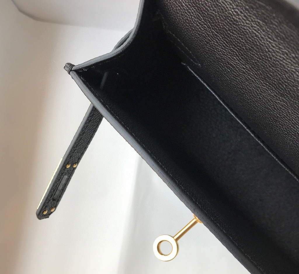 Replica Hermes Kelly Bag Hermes 19CM Epsom Shoulder Mini Bag Black Gold buckle 20455 on sale now.
