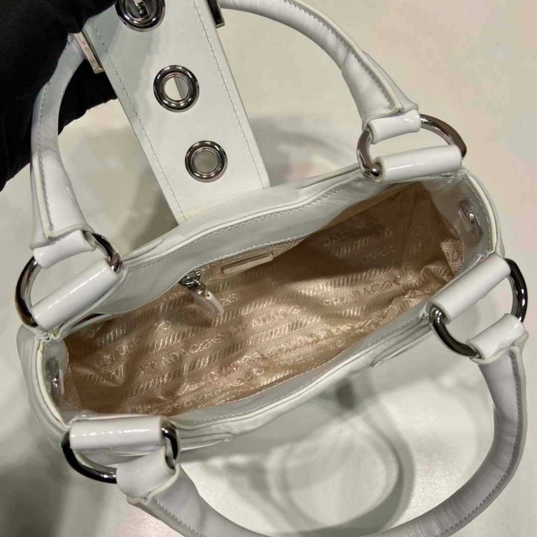 Replica Prada 1BA368 Moon padded patent leather bag White
