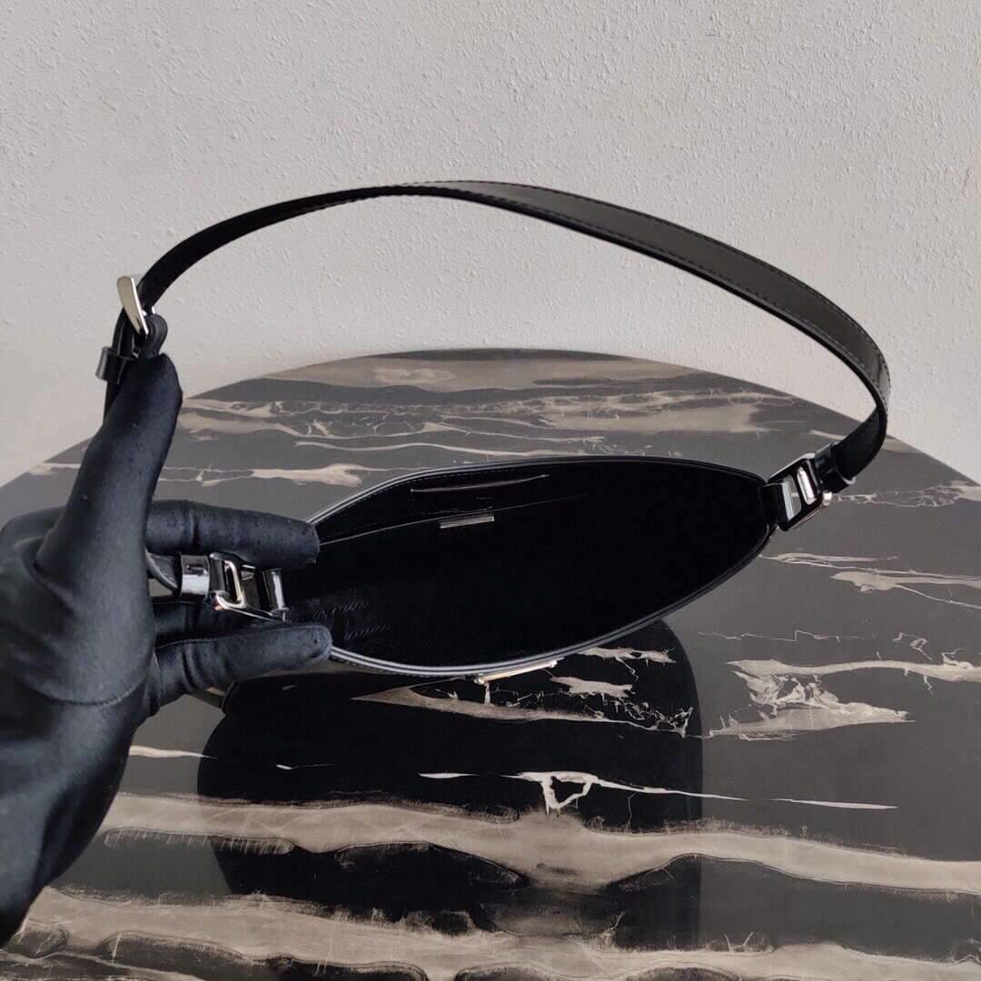 Prada 1BC156 Prada Cleo Brushed Leather Shoulder Bag Black