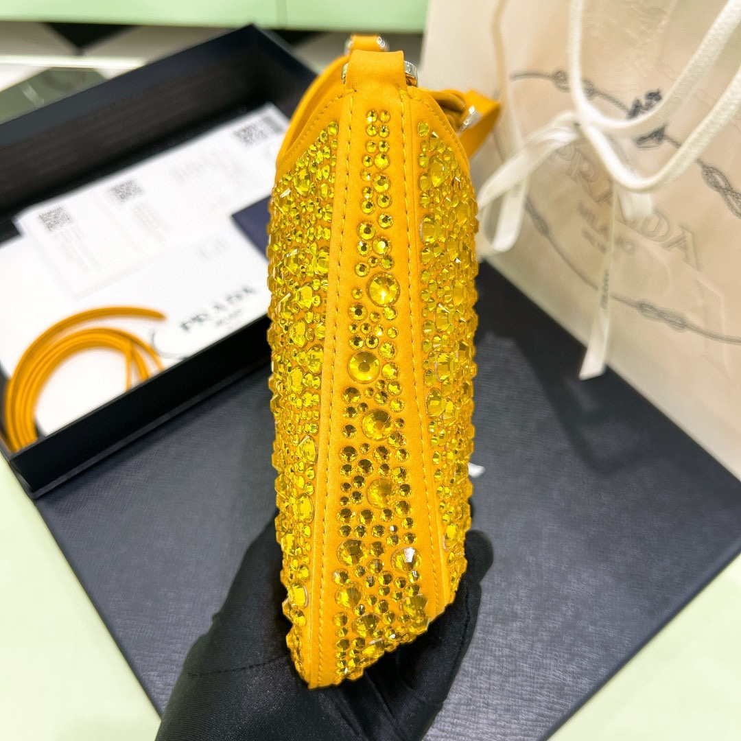Prada 1BC169 Prada Cleo satin bag with appliqués Gold Yellow on sale now.