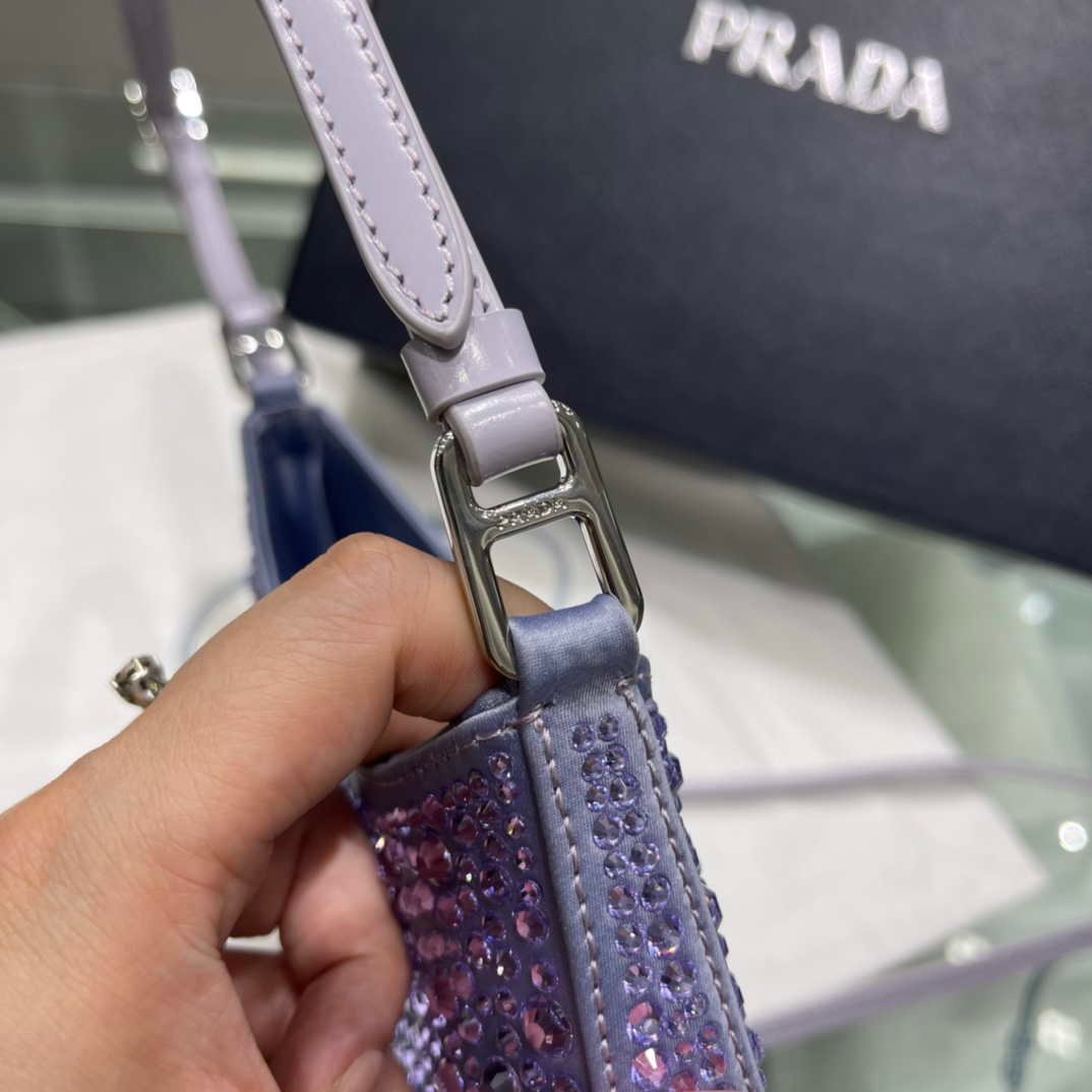 Prada 1BC169 Prada Cleo satin bag with appliqués Purple on sale now.