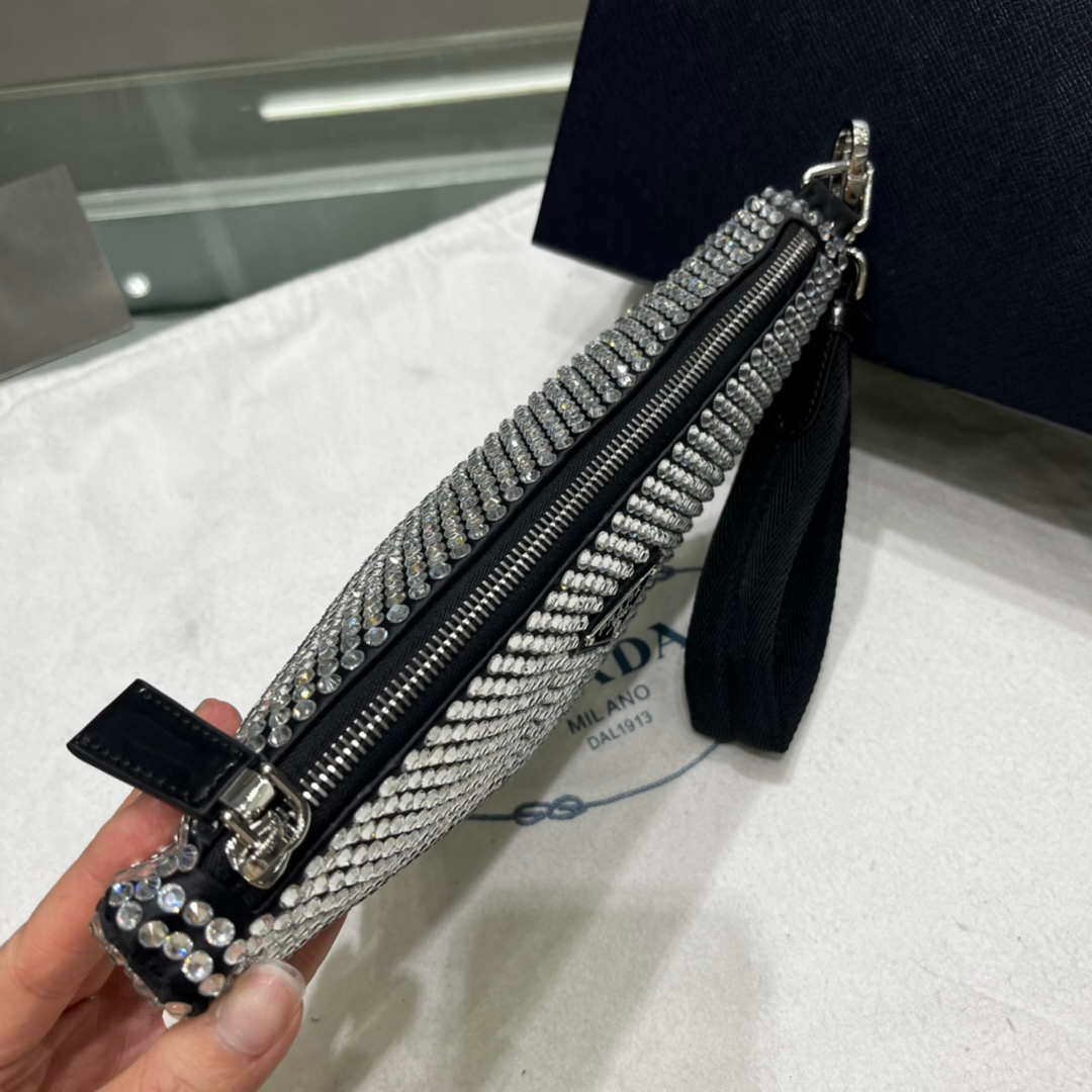 You will get an AAAAA quality knockoff Prada 1NE039 Crystal-studded satin pouch Black with the best price. 1:1 made as the original. If you are not satisfied with the product you received. please be sure to contact us. we promise to solve the problem for you. We are confident that you will adore our products and that we can establish a long-term business relationship with each other.