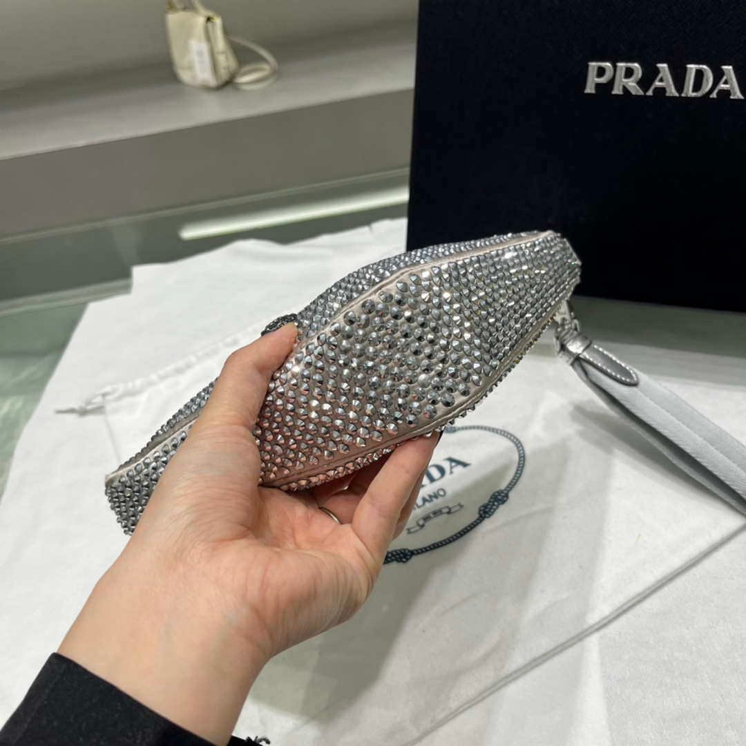 Replica Prada 1NE039 Crystal-studded satin pouch Gray