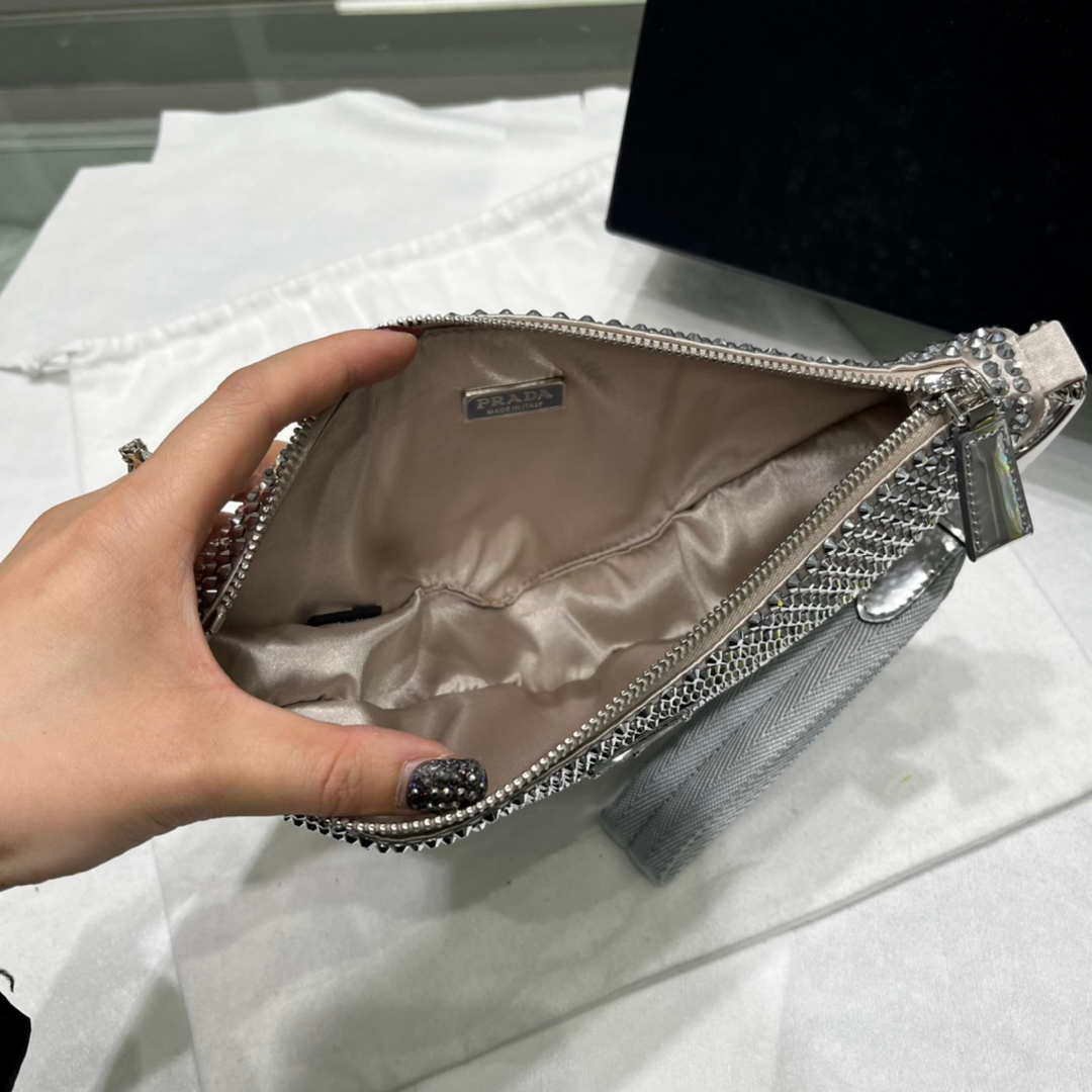 Be the first to review “Replica Prada 1NE039 Crystal-studded satin pouch Gray”