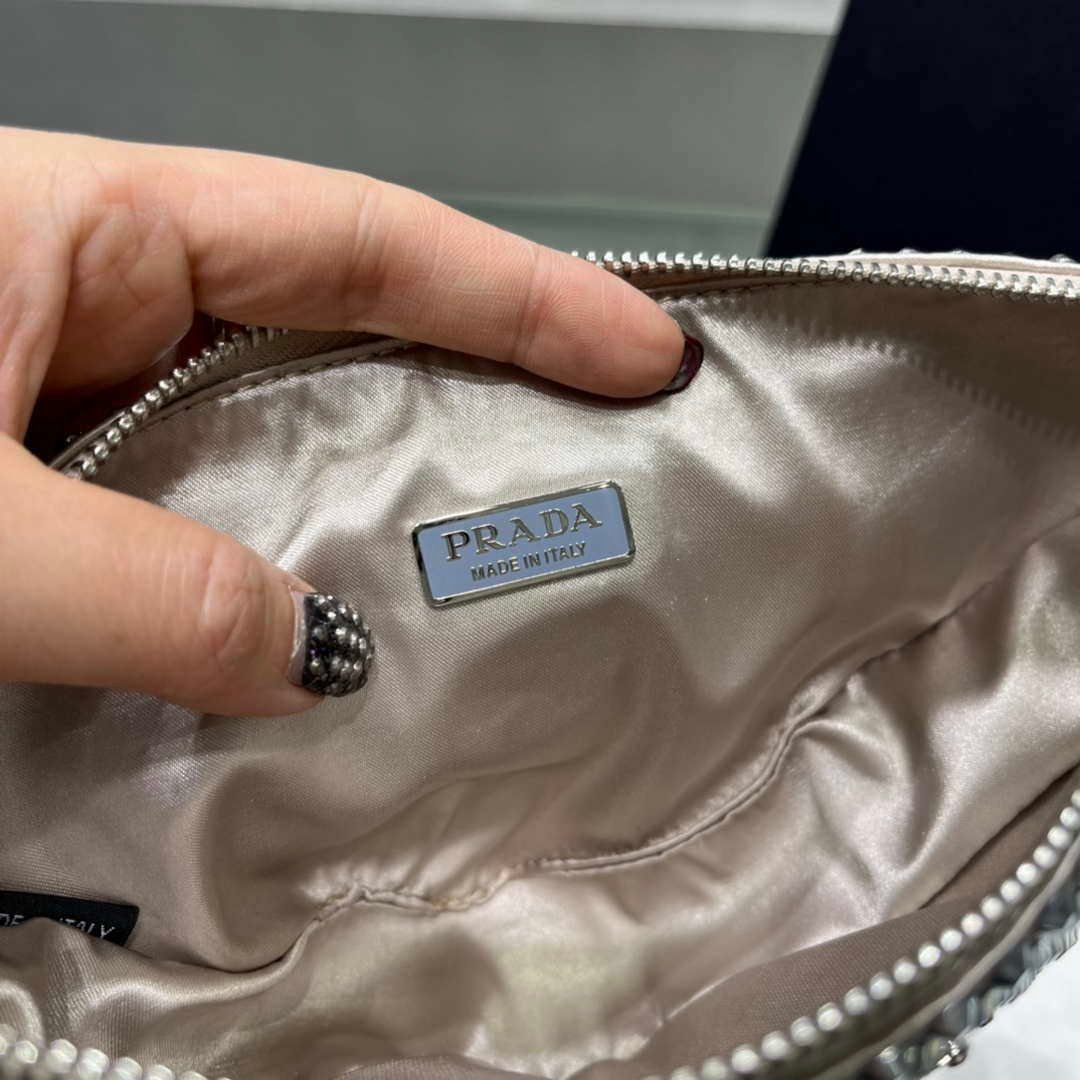 You will get an AAAAA quality knockoff Prada 1NE039 Crystal-studded satin pouch Gray with the best price. 1:1 made as the original. If you are not satisfied with the product you received. please be sure to contact us. we promise to solve the problem for you. We are confident that you will adore our products and that we can establish a long-term business relationship with each other.