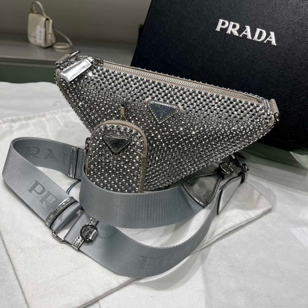 Replica Prada 1NE190 Crystal-studded satin pouch Gray