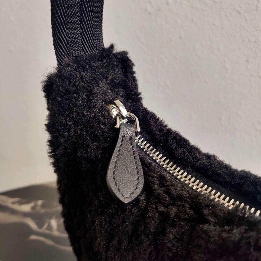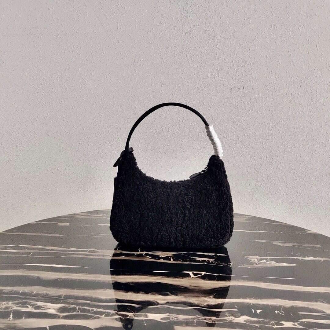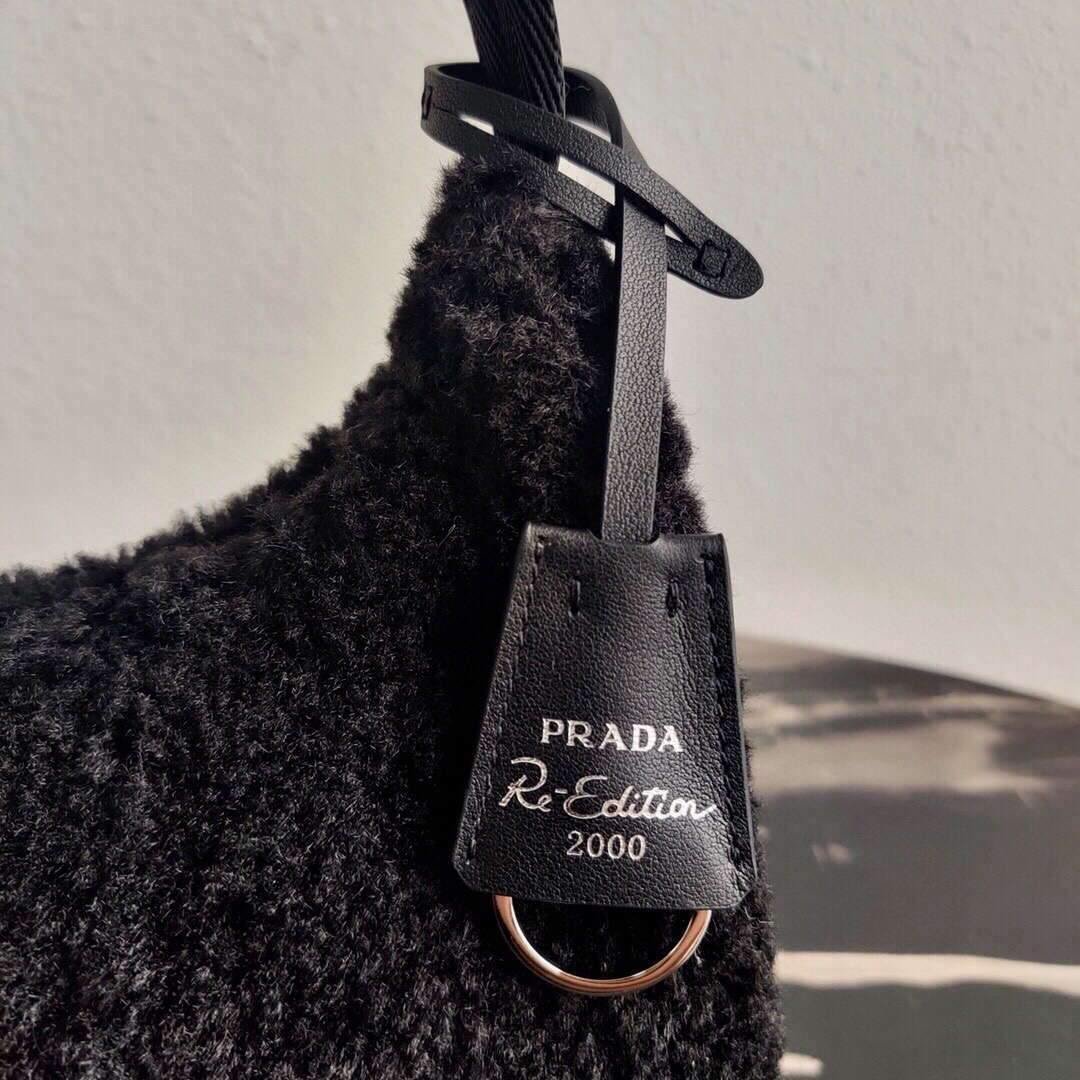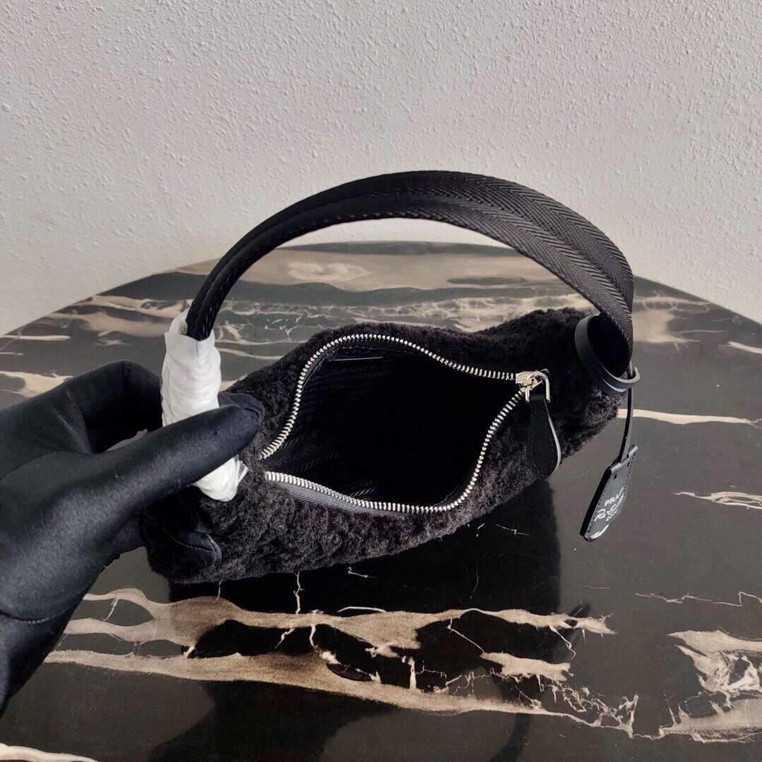 Prada 1NE515 Re Edition 2000 Shearling Mini Bag Black
