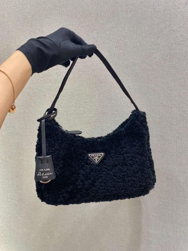 Prada 1NE515 Re Edition 2000 Shearling Mini Bag Black on sale now.
