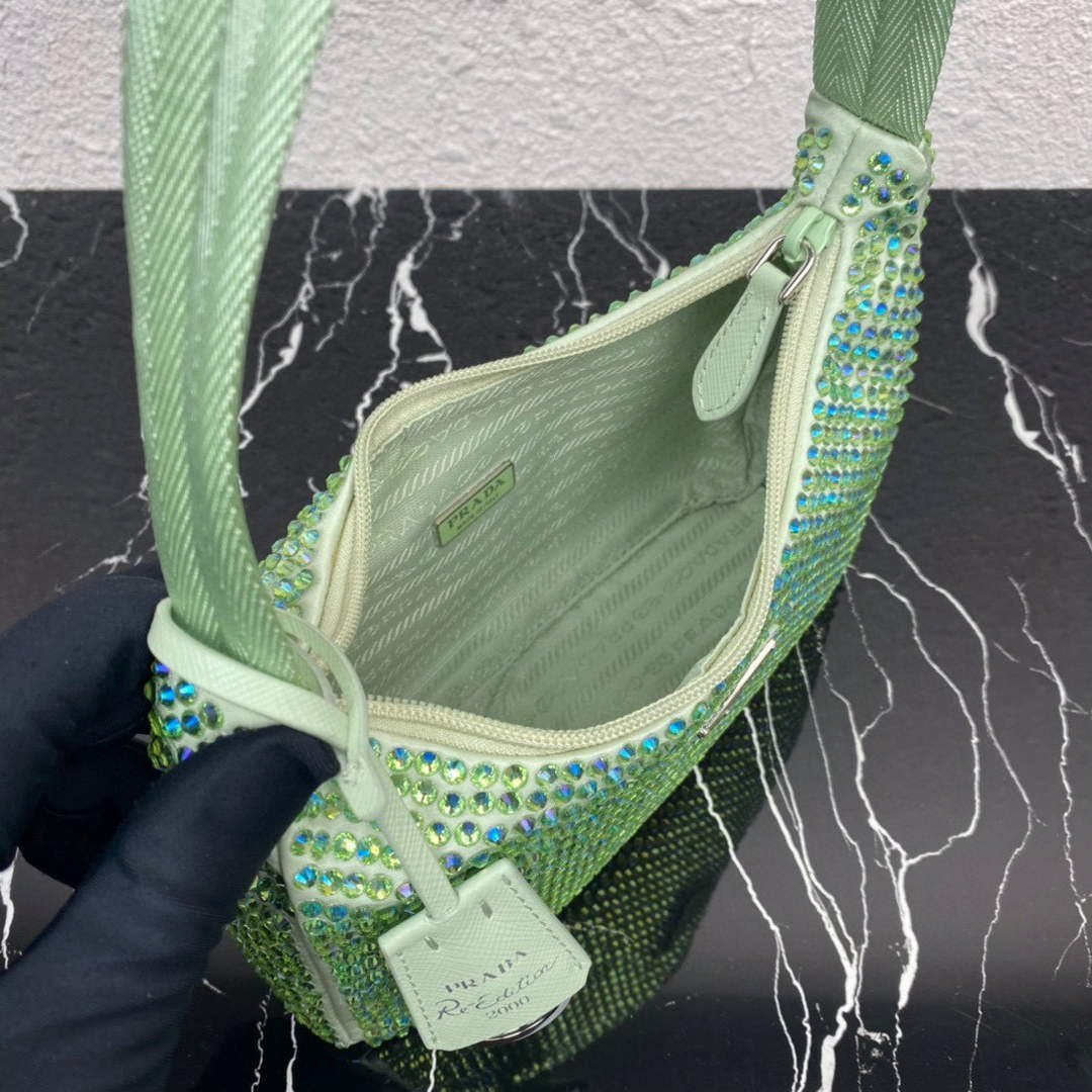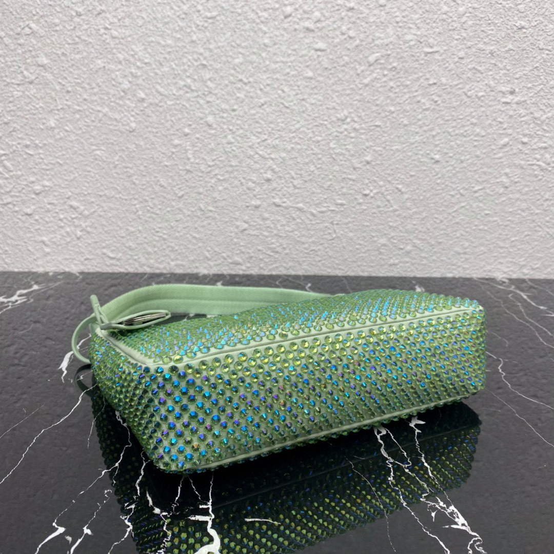 Replica Prada 1NE515 Satin mini-bag with artificial crystals Green