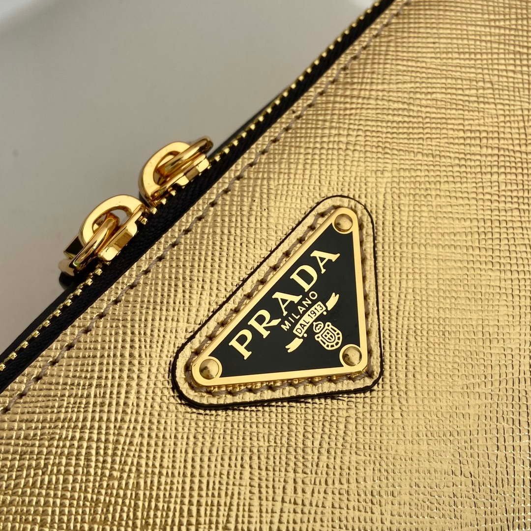 Prada 2VH070 Saffiano Gold leather Prada Brique bag on sale now.
