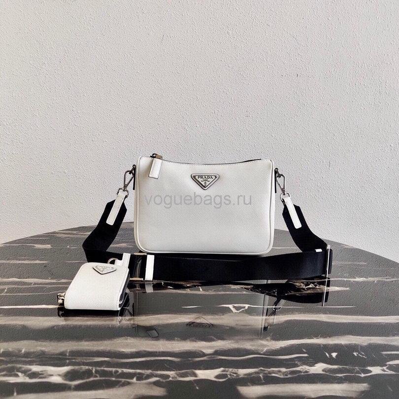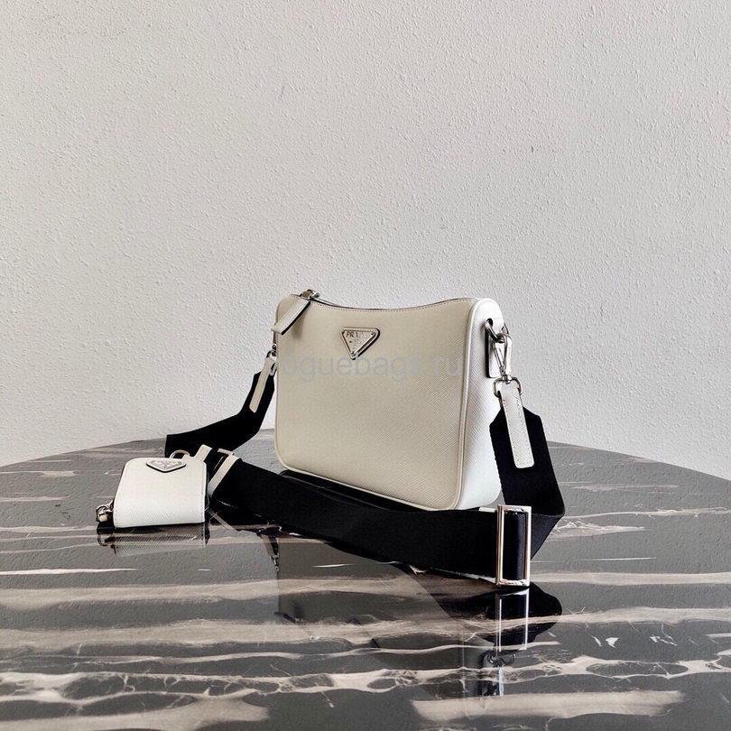 Prada 2VH113 Saffiano Leather Shoulder Bag in White