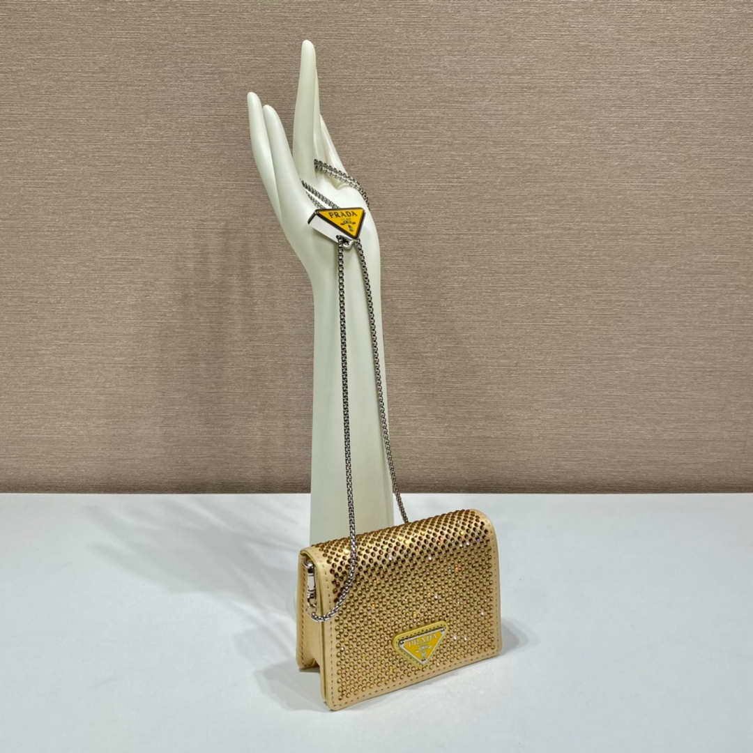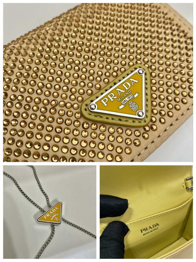 You will get an AAAAA quality knockoff Prada Crystal-studded card holder with shoulder strap 1MR024 Yellow Crystal with the best price. 1:1 made as the original. If you are not satisfied with the product you received. please be sure to contact us. we promise to solve the problem for you. We are confident that you will adore our products and that we can establish a long-term business relationship with each other.