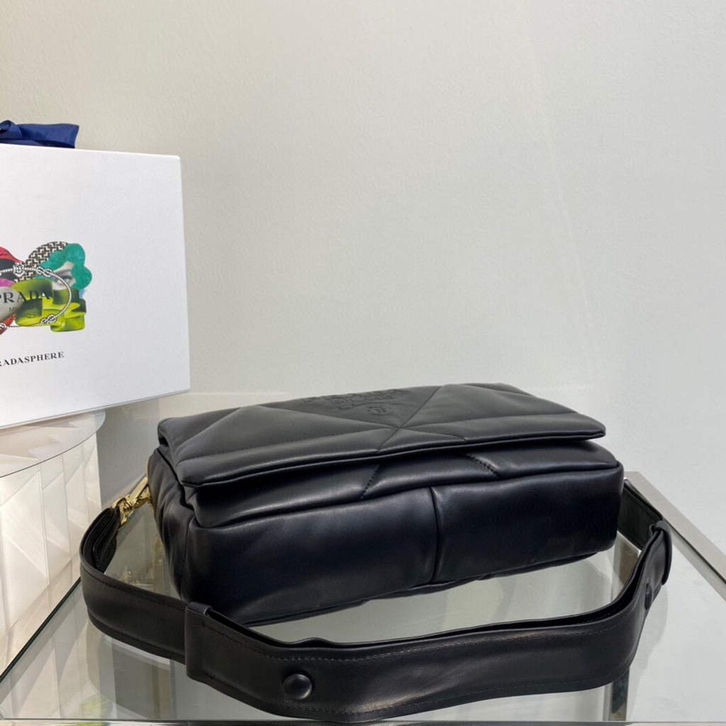Replica Prada Padded nappa leather shoulder bag 1BD306 Black