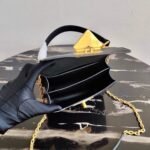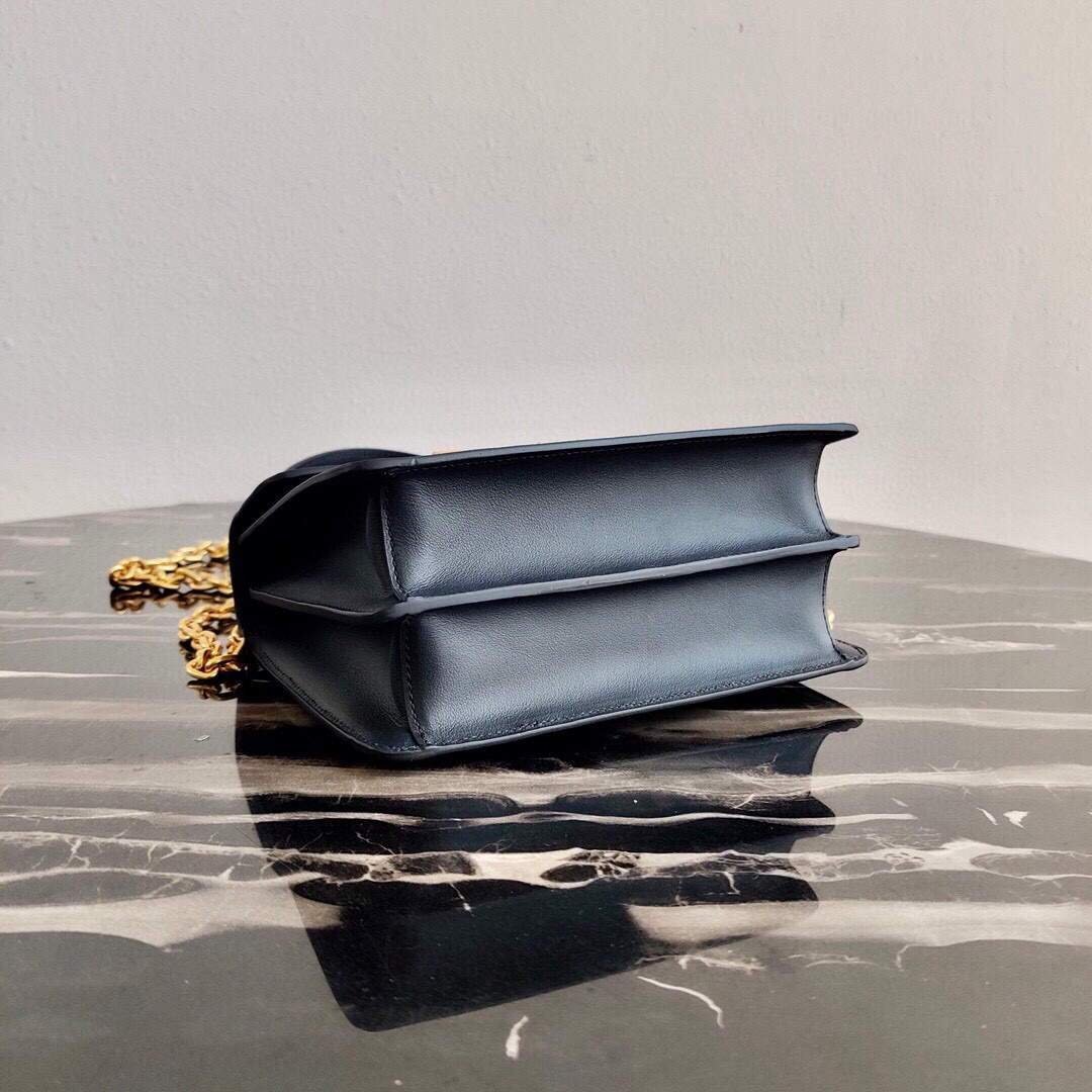 - Detachable metal chain shoulder strap with Saffiano leather shoulder pad