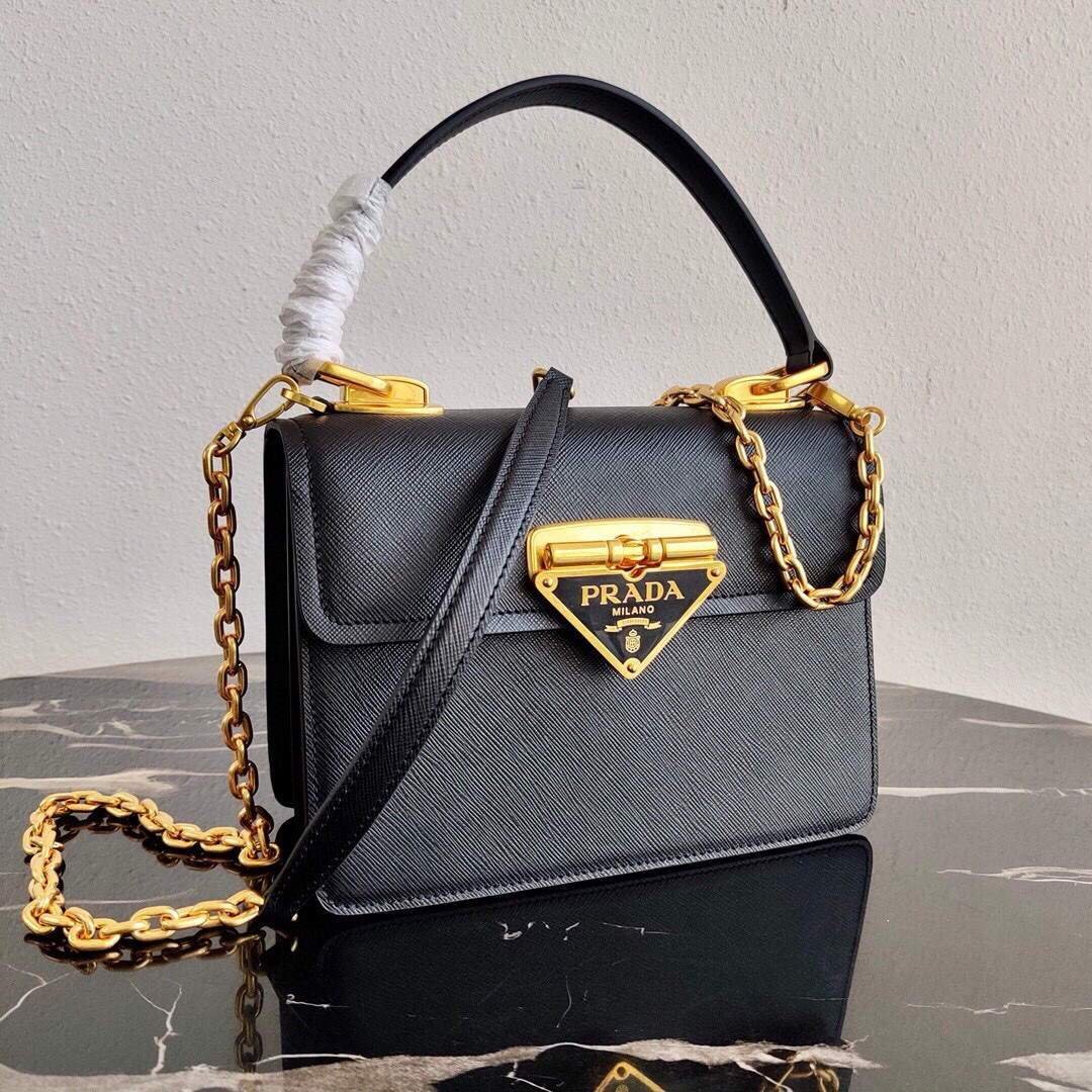 Prada Saffiano Leather Symbole Bag 1BN021 Black on sale now.