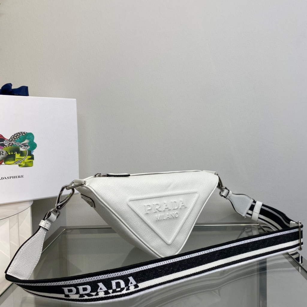 Prada Saffiano Prada Triangle bag 2VH155 White on sale now.
