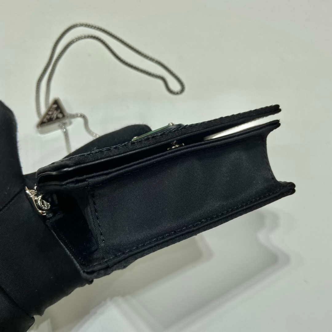 Replica Prada sequins-studded card holder with shoulder strap 1MR024 Black