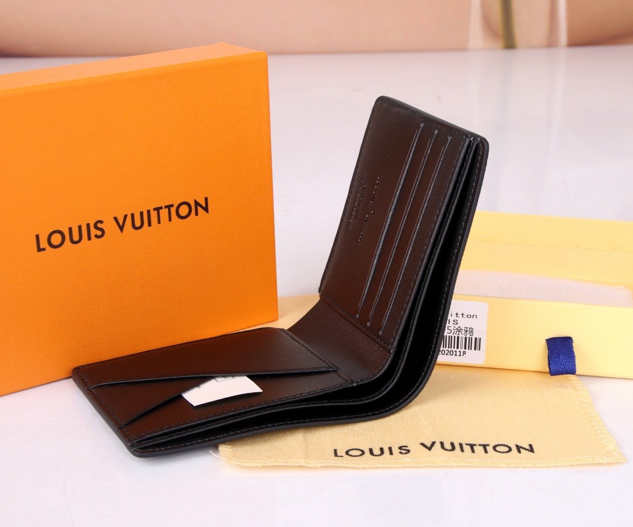 Top original 💎 [Actual photo, own background] M60895 graffiti MULTIPLE wallet is made of Monogram Watercolor Blue canvas, showing the irregular Monogram pattern designed by Virgil Abloh for midsummer. It has card slots, banknote compartments and side compartments. 11.5 x 9 x 1.5 cm 60895.