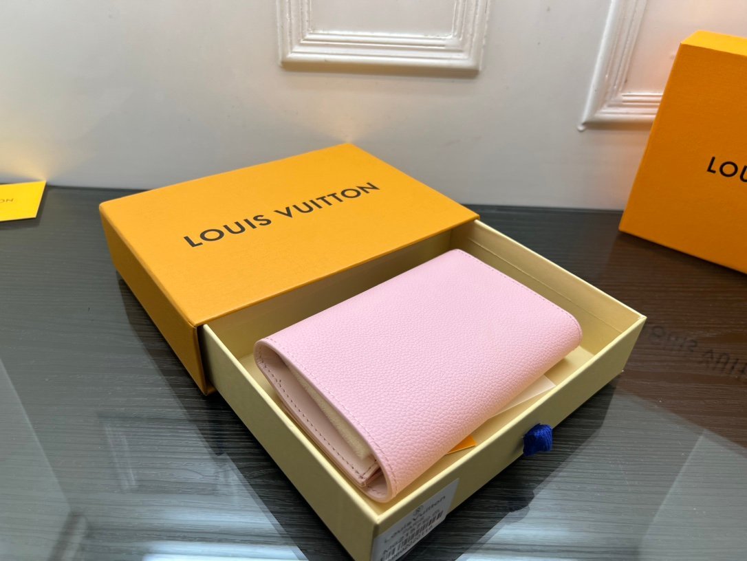 M62157 is crafted in Taurillon leather, and this Capucines mini purse is versatile and spacious to accommodate everyday belongings. The elegant bag wallet’s construction is ingeniously original and consists of two folding vertical lids, providing plenty of room for credit cards, change and banknotes. Size: 13.5 * 9.5 * 1.5cm