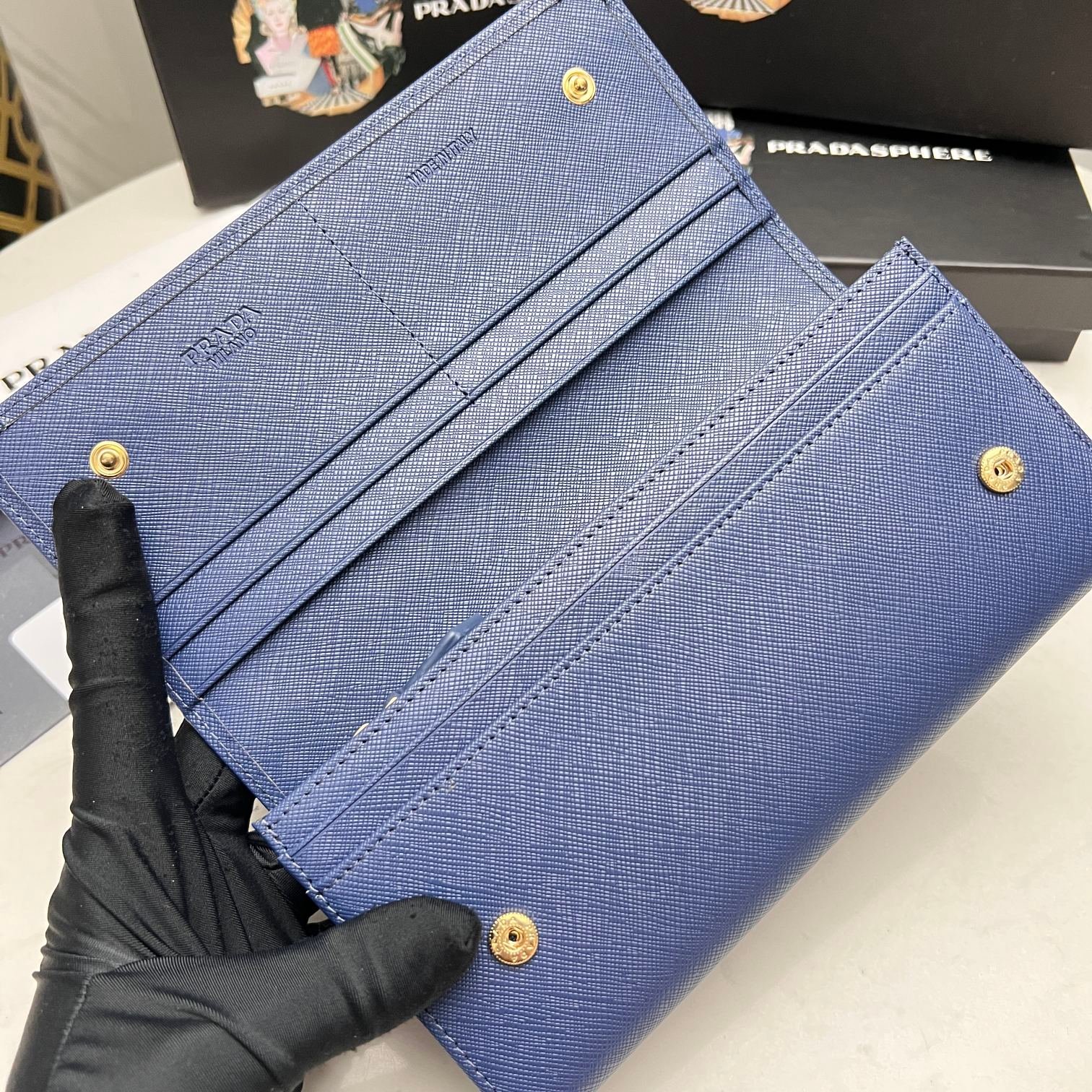 PRADA.👏👏 Classic flap wallet with two compartments.💼 A classic piece, simple and fashionable. Made of top Italian original cross-grained cowhide with excellent texture. Imported threaded lining. White steel metal hardware accessories! Exquisite stitching is evenly and neatly done. Exquisite workmanship. Size: 19x10x2.5. Colors: multicolored scattered labels including plum red, bright red, blue, black, and pink. Number: ML202.