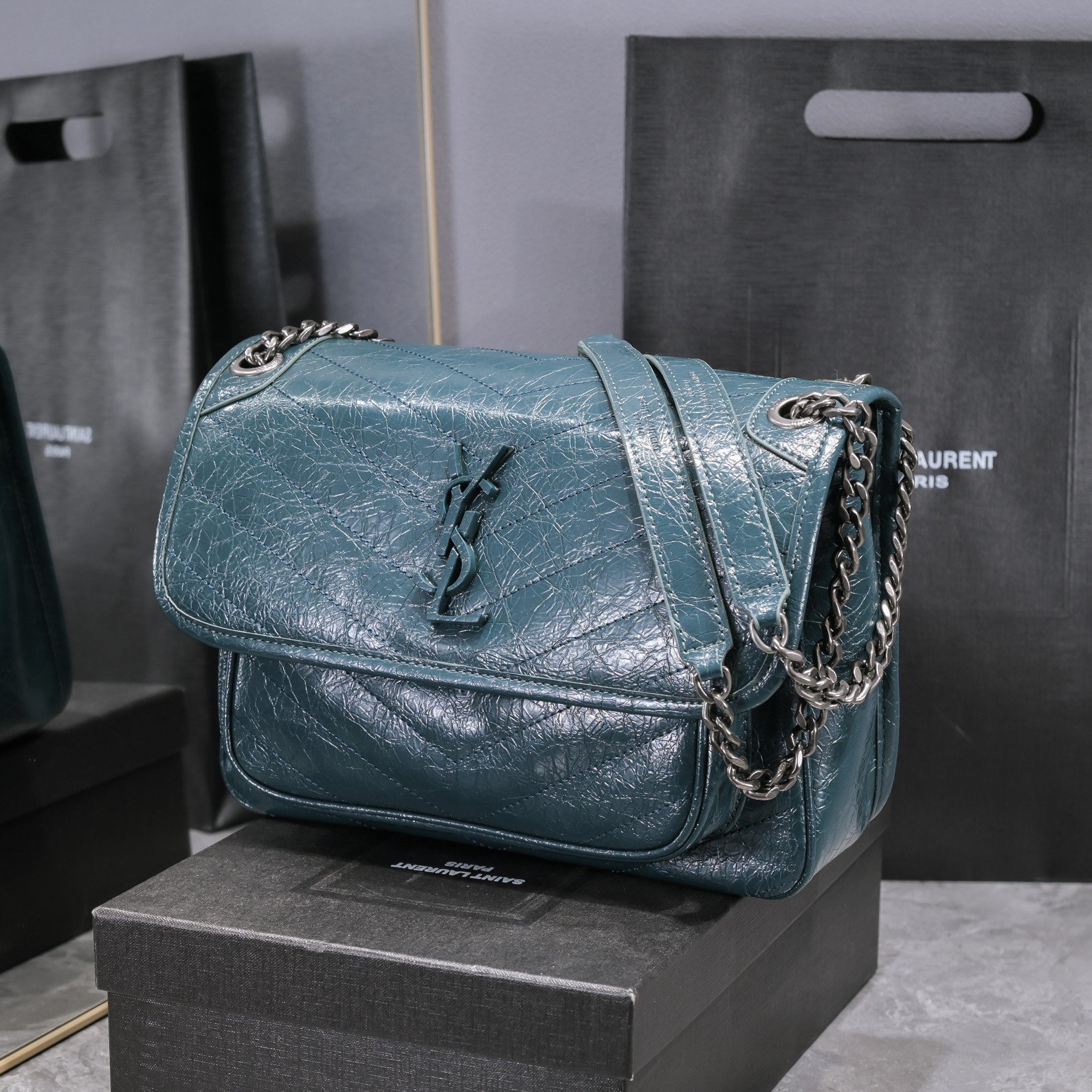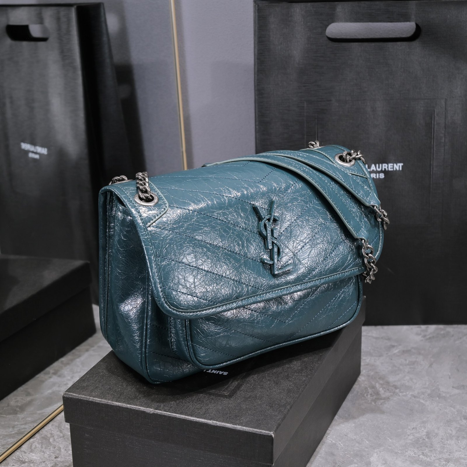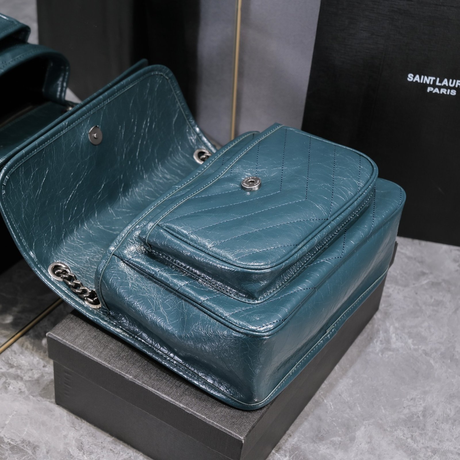 Large Saint Laurent Niki messenger bag – Top Italian two-tone baked tar cowhide is matched with retro hardware. The texture and gloss are very unique! The hardware is even more special. The surface of the hardware LOGO is wrapped with cowhide! Two compartments, one zipper pocket, and super large capacity! The oiled wax leather of the bag body is extremely soft to the touch. There is no problem with random folding. Model: 498894. Size: 28x20x8cm.