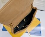 Large size. The latest YSL model, JAMIE in lambskin. The soft leather is matched with a matte frosted metal shoulder strap and two sections of lambskin. The capacity is extremely large. The bag shape is designed in a classic retro distressed version. It is very beautiful and fashionable, versatile for commuting, unexpectedly lightweight, and highly practical! It can be carried by hand, on one shoulder or crossbody with multiple carrying methods! An absolute must-have item! Size: 43×29×9 cm. Code.